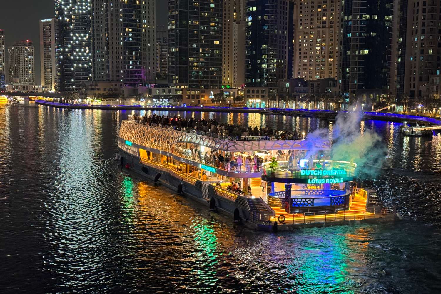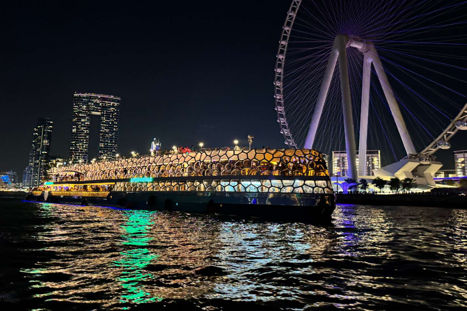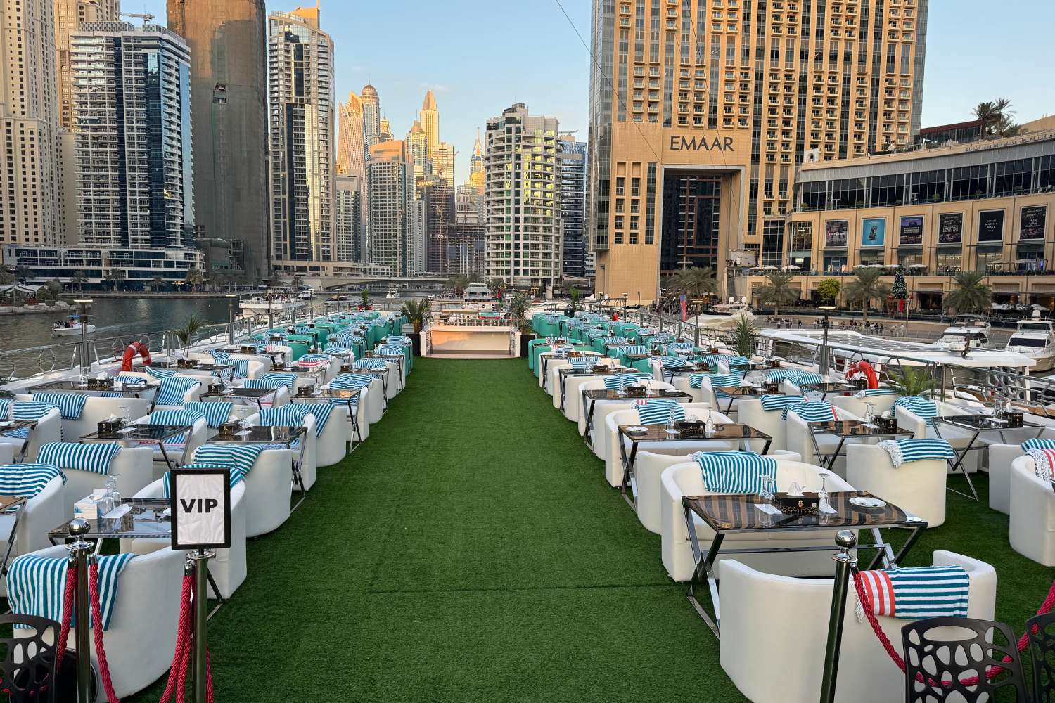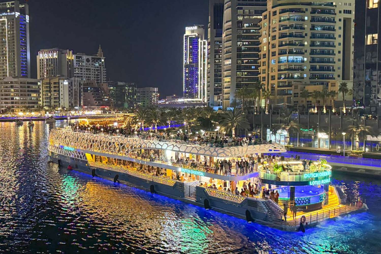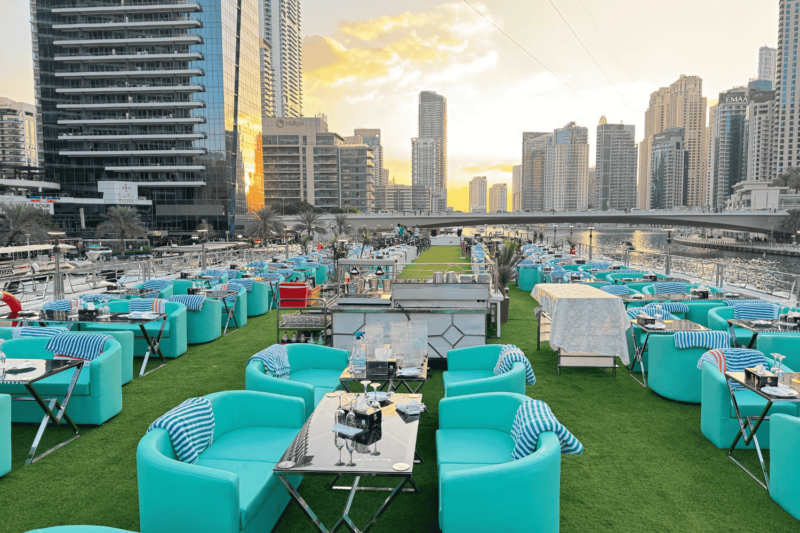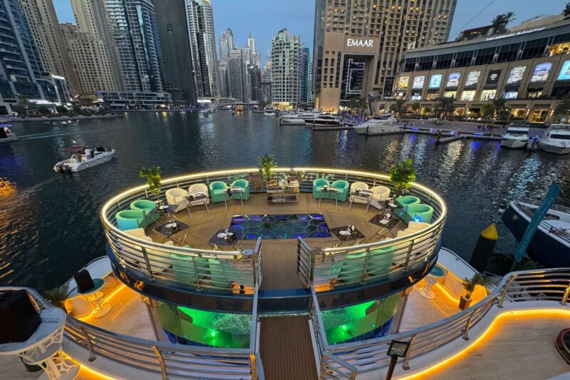 - Embarquement : L’embarquement commence à 18 h 45 et se termine à 19 h 30 à l’embarcadère 7, Dubai Marina Promenade, à côté du Marina Mall.