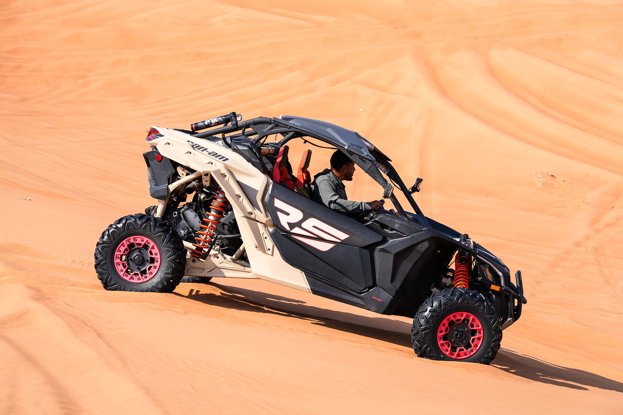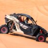 Our Can-Am X3 2-seater buggies deliver powerful performance and responsive handling on desert terrain. Built for both speed and stability, these buggies make every dune climb and descent unforgettable.